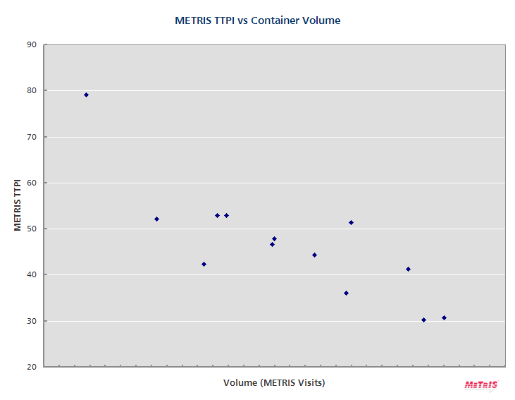 But simple crunching of the numbers reveals that the dominant predictor of performance by terminal is simply container volume (Figure 1).